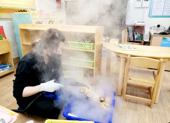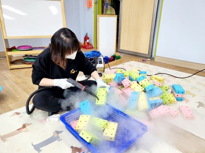 스팀,세척,살균,소독하였습니다.