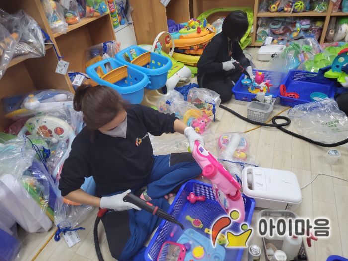 장난감류를 스팀세척살균소독하였습니다.