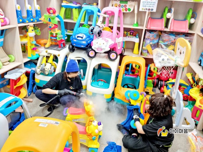 장난감을 스팀세척살균소독 하였습니다.