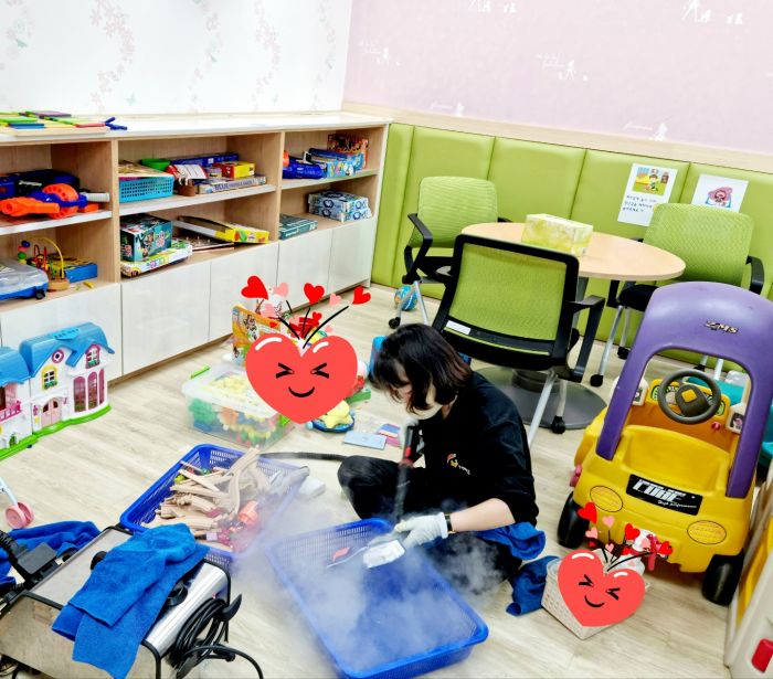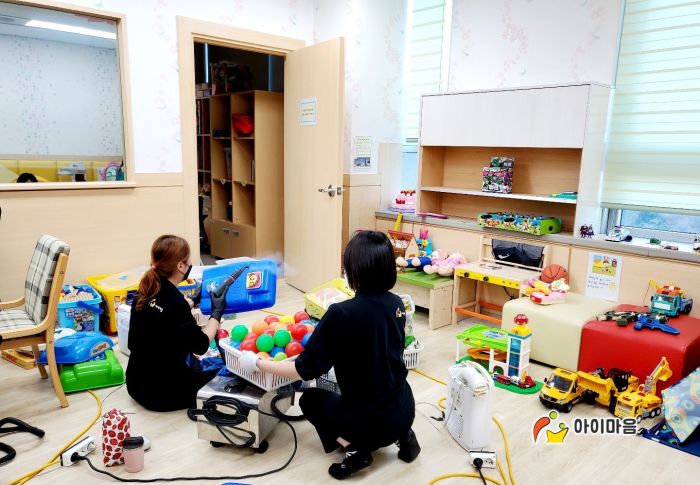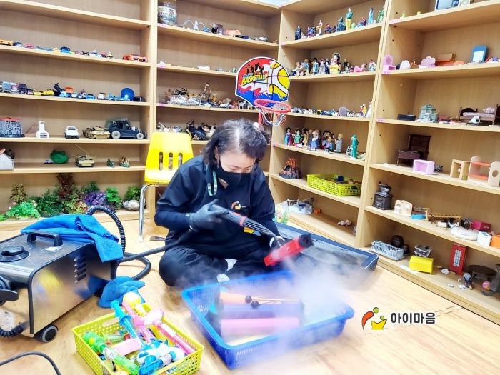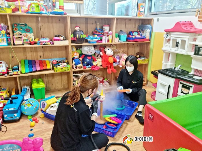 장난감과 기타 피규어들을 스팀세척살균소독 하였습니다