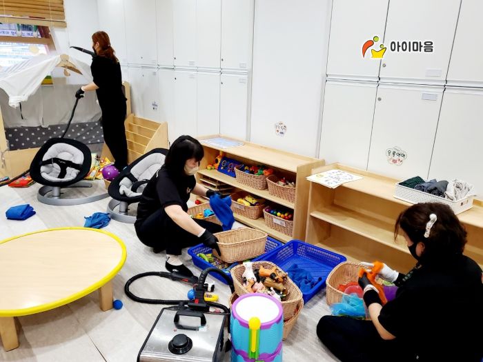 시간제보육실 장난감등을 스팀세척살균소독 하였습니다.