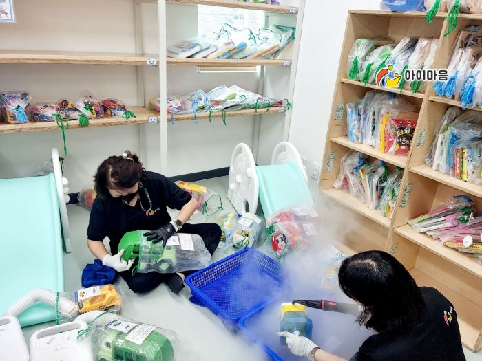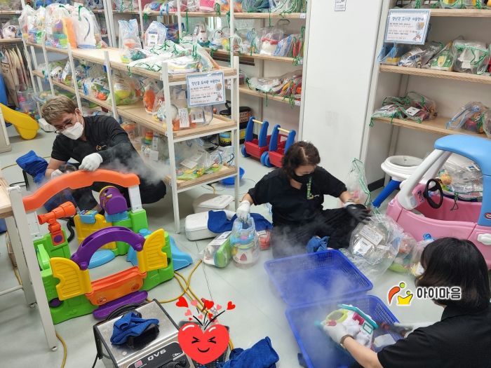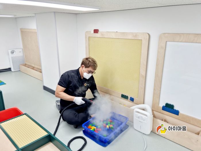 장난감과 지정시설물을 스팀세척살균소독 하였습니다.