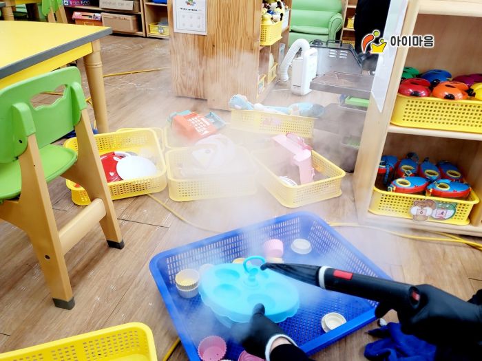 용인 청곡초병설유치원 1개실의 책걸상과 교구장, 교구재를