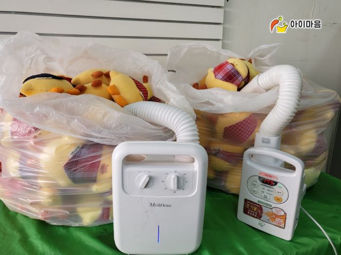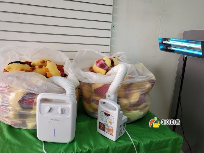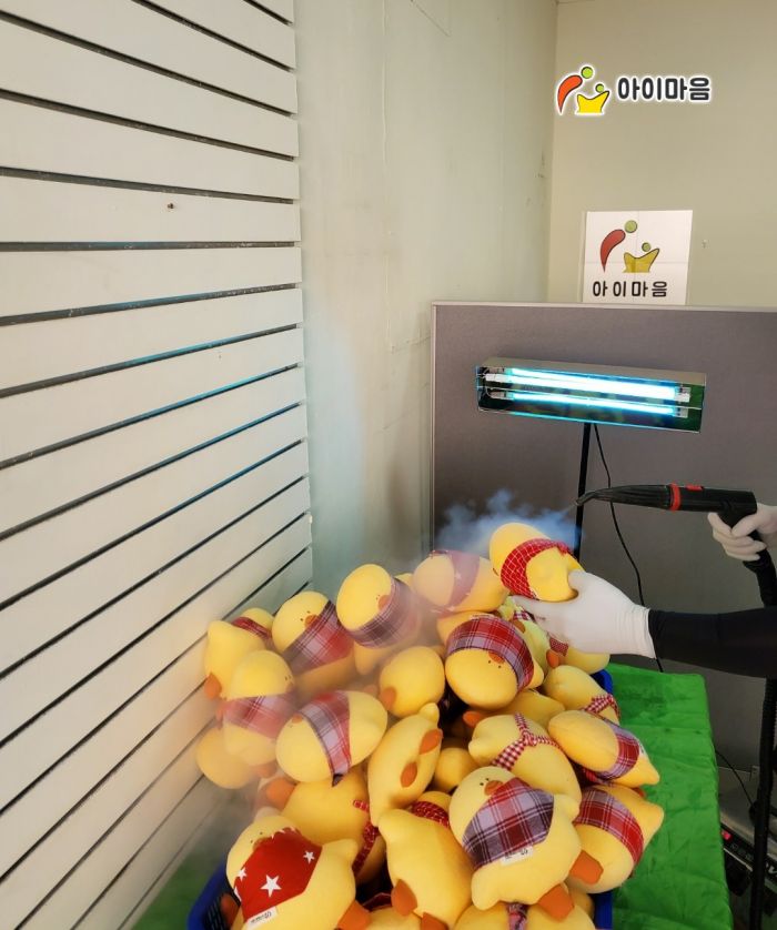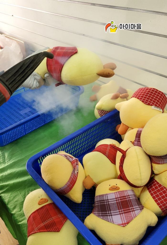 무료나눔 인형들을 170도 고온스팀으로 먼지와 실밥등 이물질을 제거하고