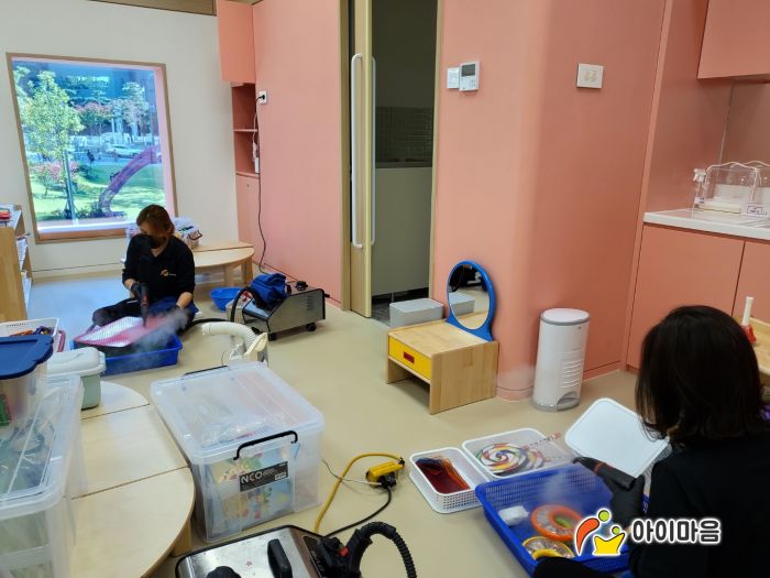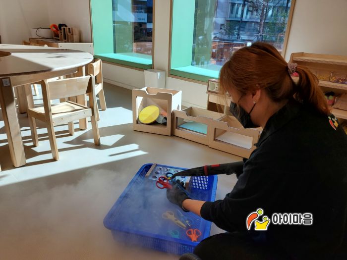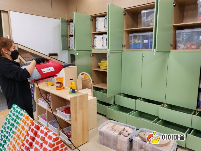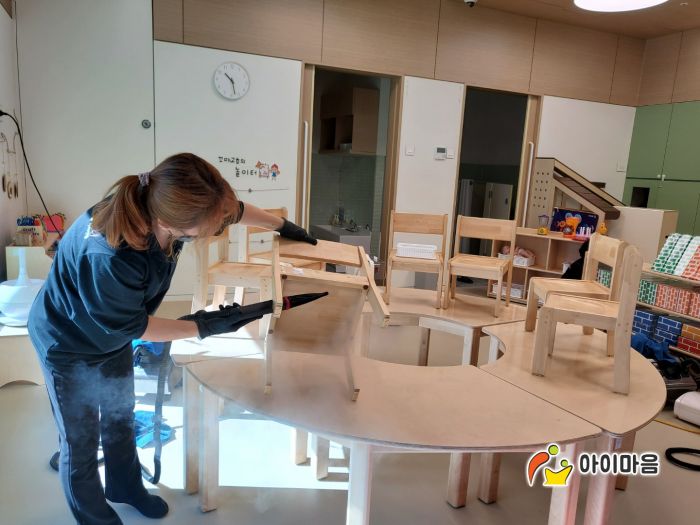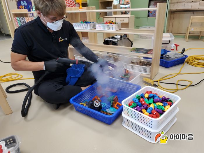 교구장,책걸상,장난감류를 스팀,세척,살균,소독하였습니다.