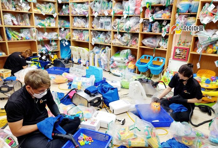 장난감을 스팀세척살균소독 하였습니다.
