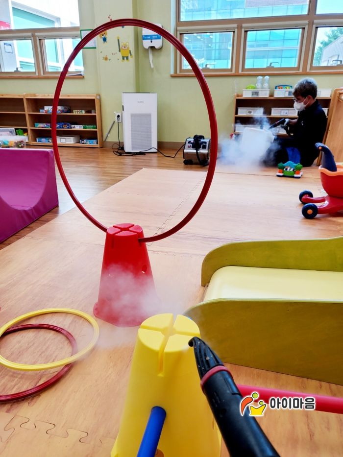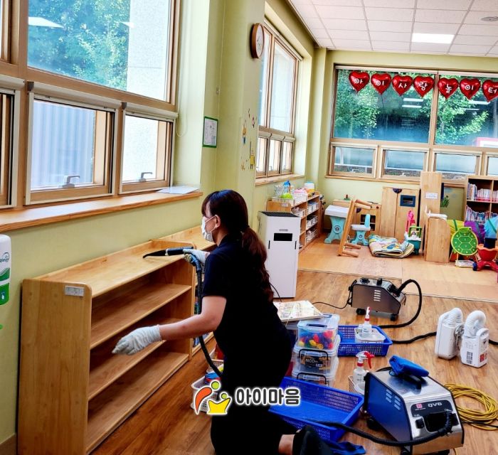 장난감과 시설물을 스팀세척살균소독 하였습니다.