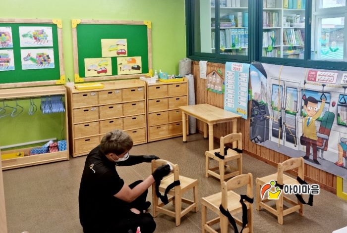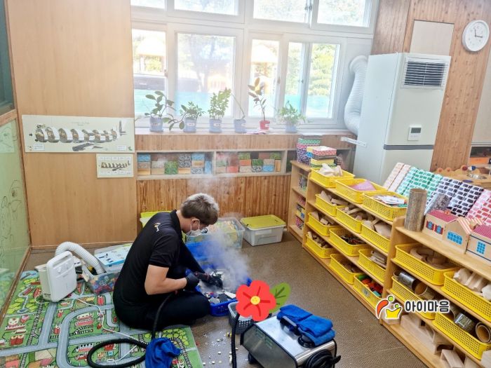 책걸상과 교구장, 교구재를 스팀세척살균소독 하였습니다.