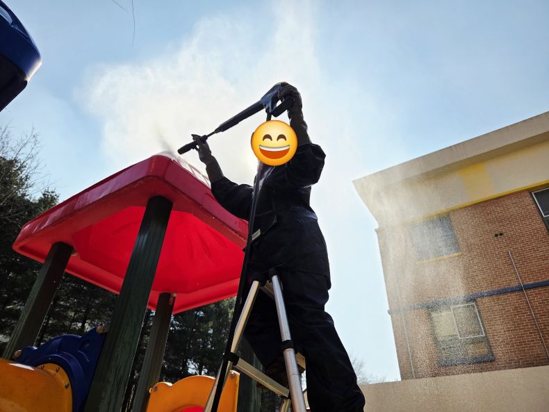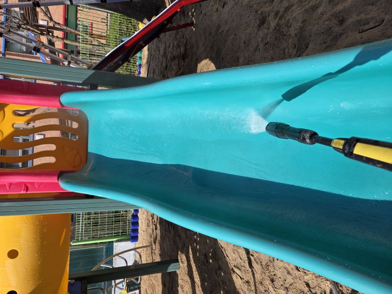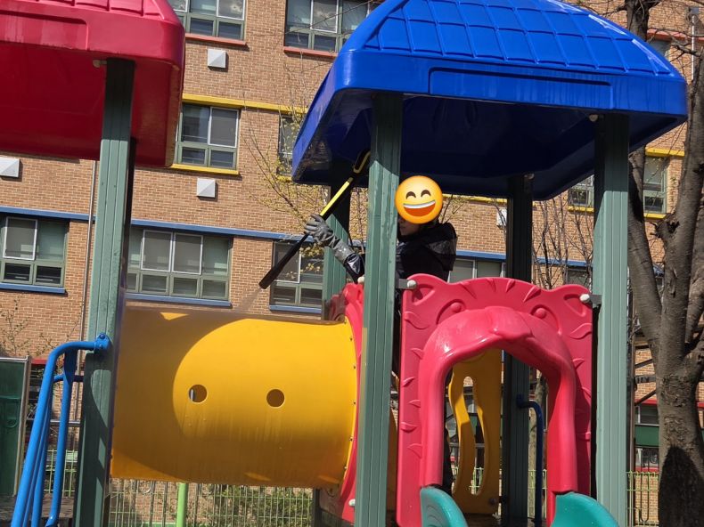 현암초병설유치원 바깥놀이터 시설물을 세척작업 하였습니다.