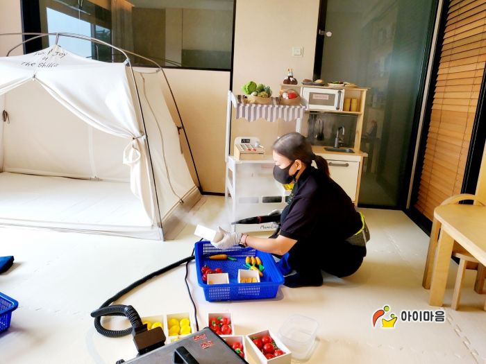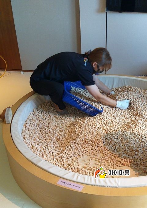 호텔신라 키즈룸 두개룸의 편백나무칩과 카펫, 장난감들을
