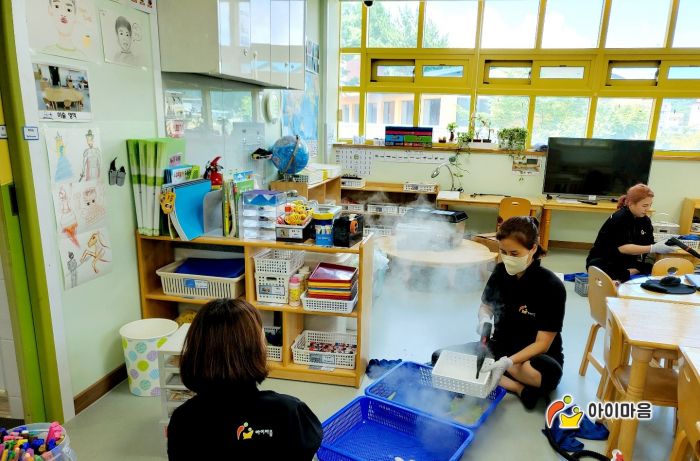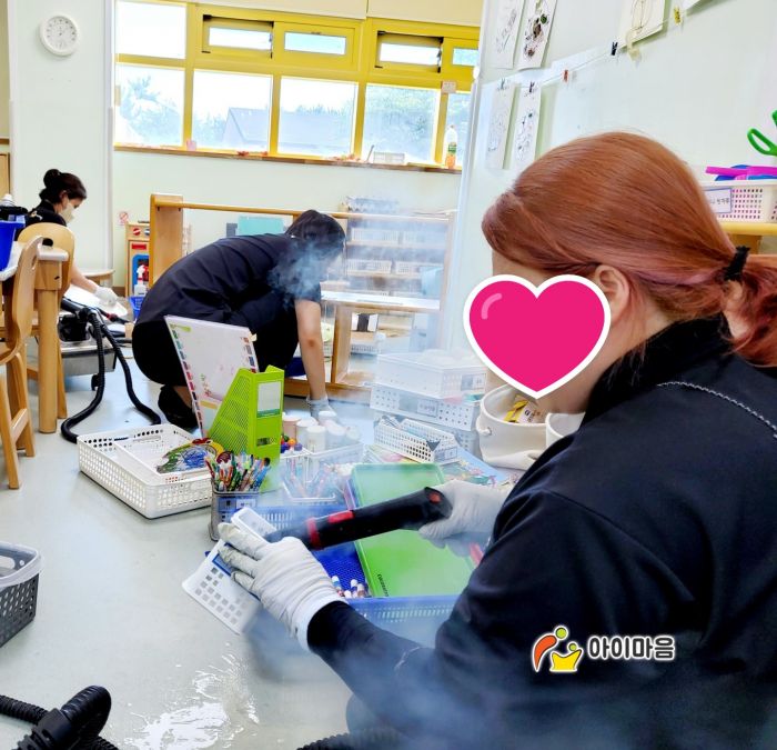 책걸상과 교구장, 교구재 등을 스팀세척살균소독 하였습니다.