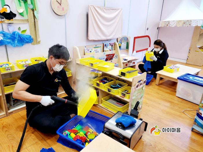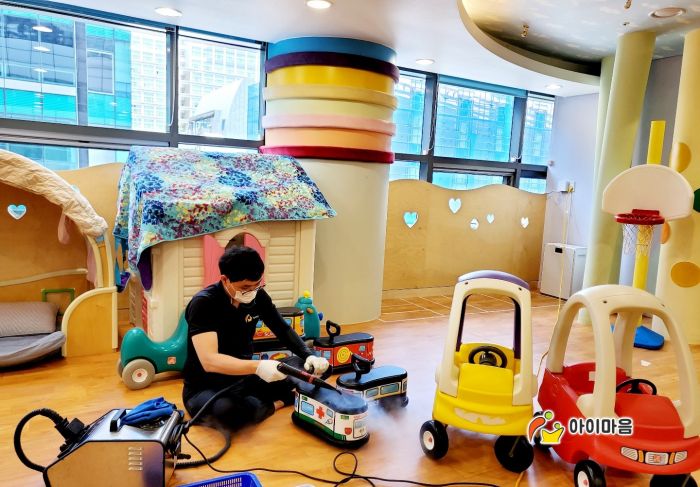 책걸상과 교구장, 교구재, 카펫과 실내놀이터를