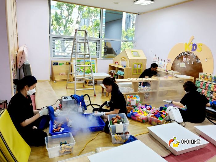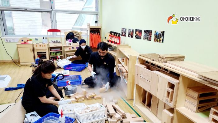 세아별어린이집 교구재와 원전체 시설물을 스팀세척살균소독