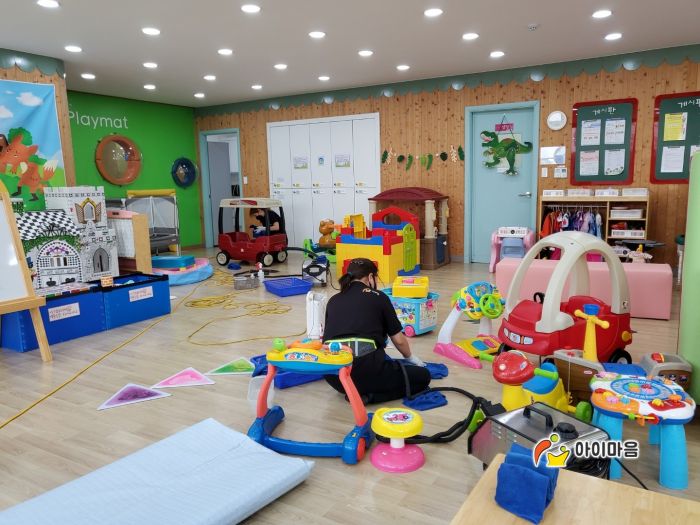 장난감과 시설물 전체를 스팀세척살균소독 하였습니다.