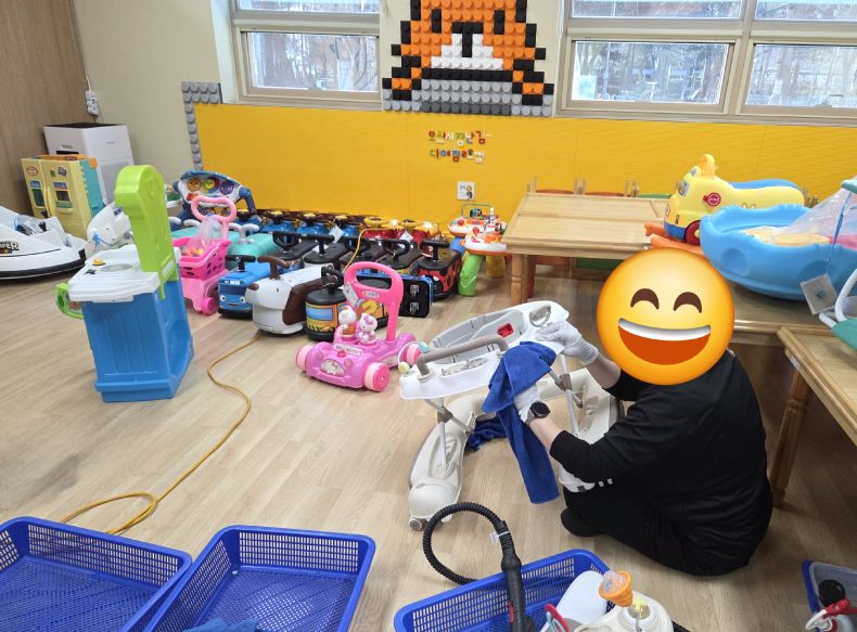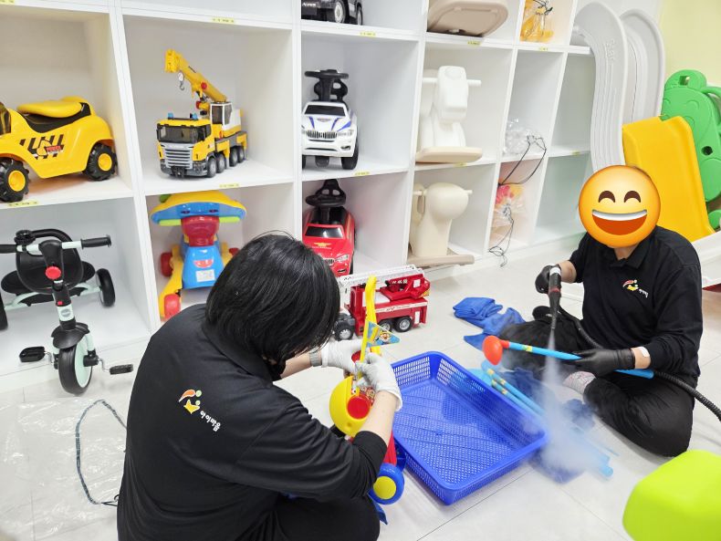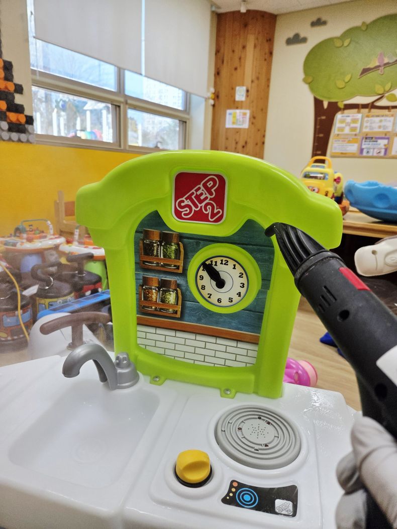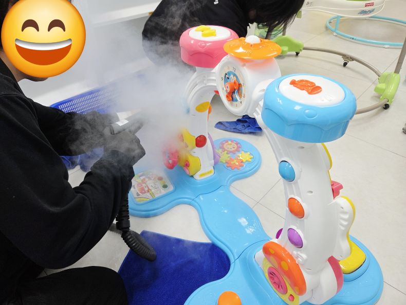 장난감을 스팀세척살균소독 하였습니다.
