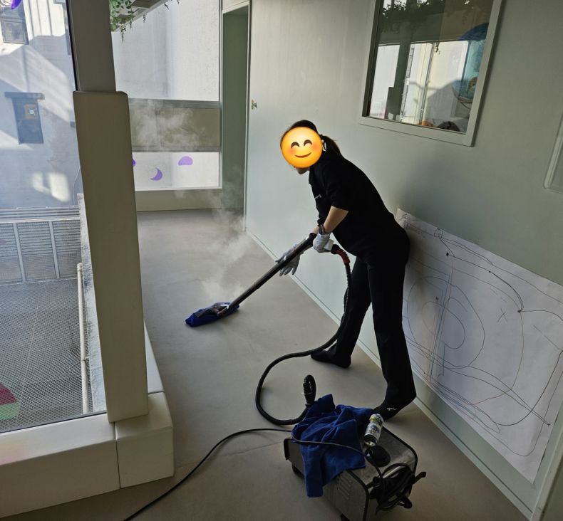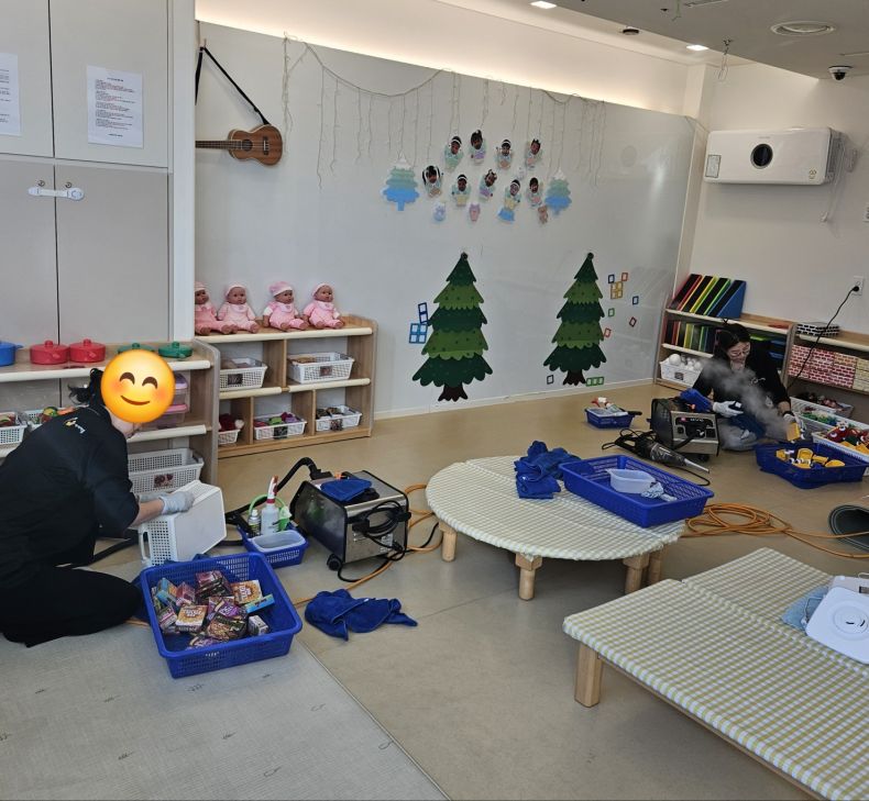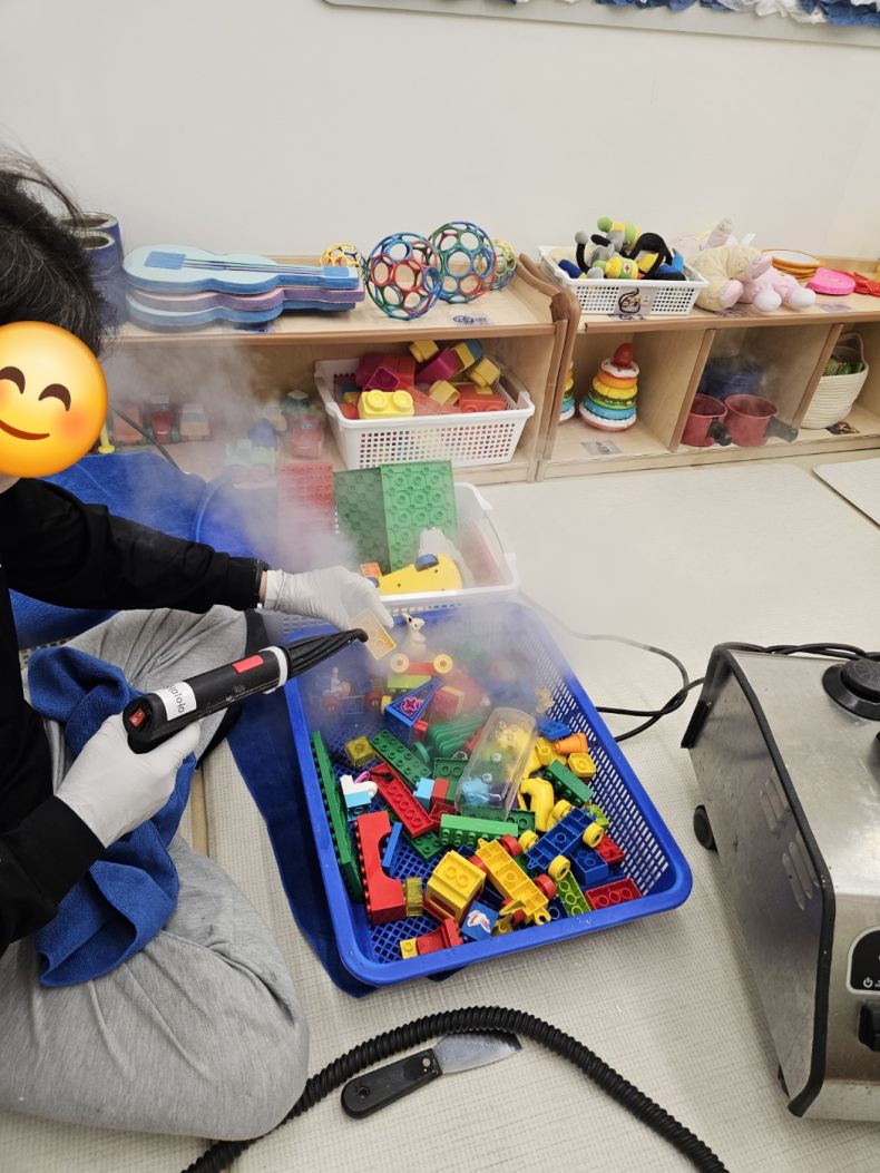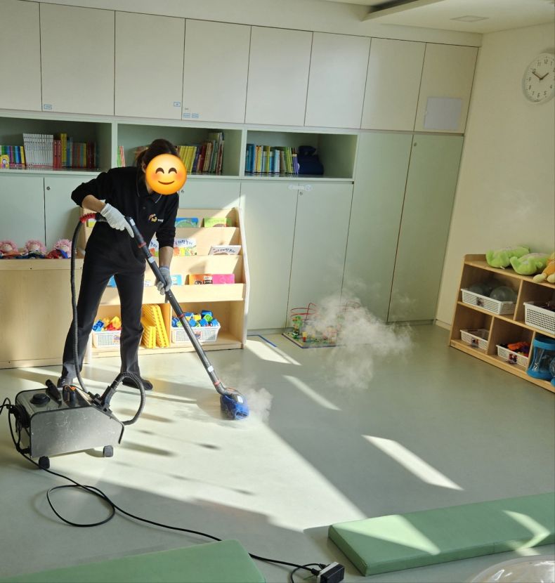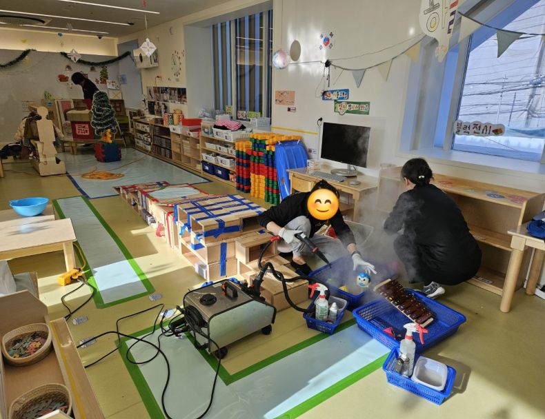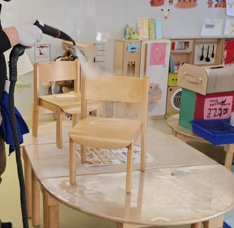 책걸상과 교구장, 교구재를 스팀세척살균소독 하였습니다.
