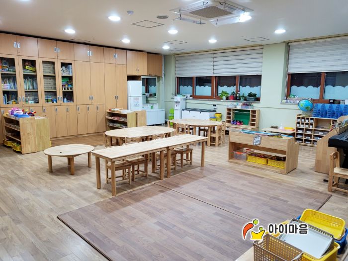 4개교실의 교구장,교구재,책걸상,장난감,바닥을