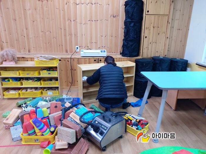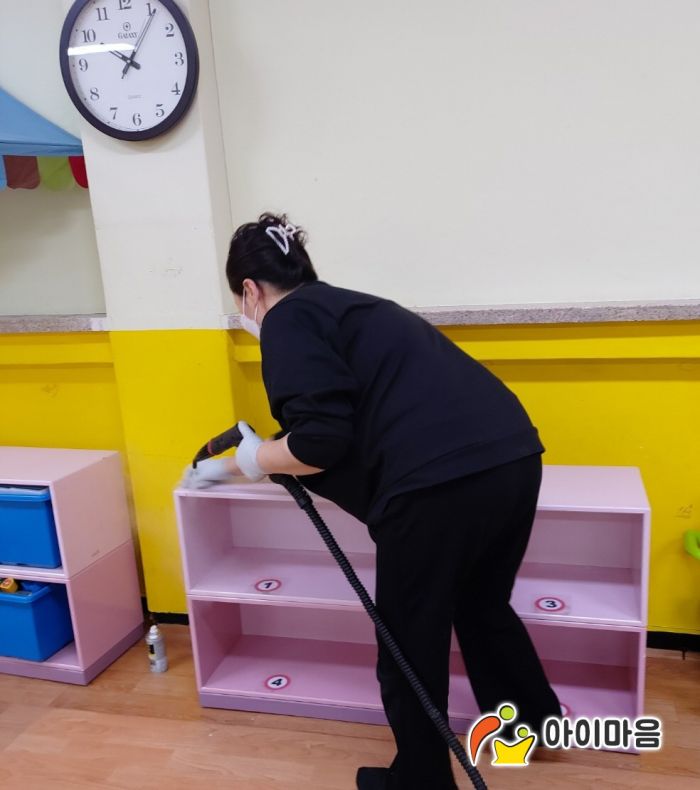 교구장,교구재,책걸상,장난감등을 스팀,세척,살균,소독하고