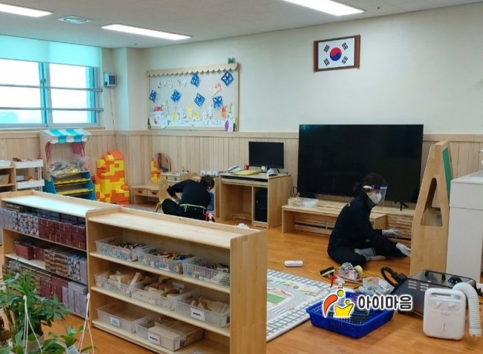 책걸상 교구장, 교구재를 2틀째 스팀세척살균소독 하였습니다.