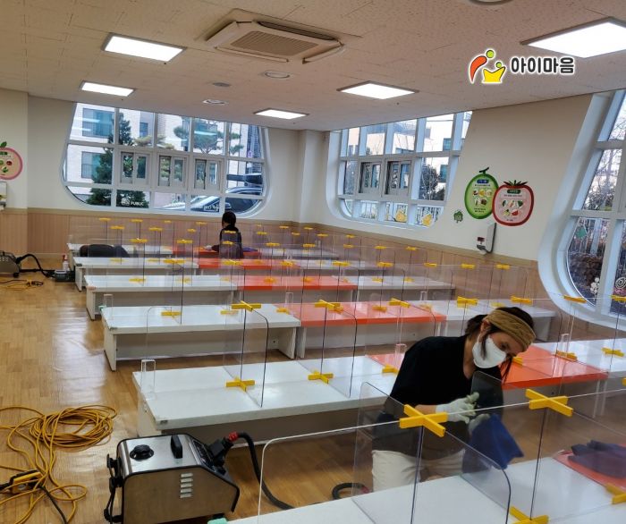 즐거운방 레고와 장난감, 급식실 책상과 가림막을