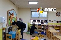 책걸상과 교구장, 교구재를 스팀세척살균소독 하였습니다.