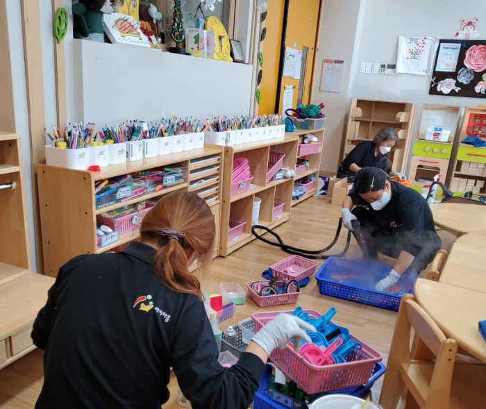 스팀세척살균소독 작업을 1일차 시작하였습니다.