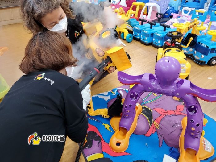 어제 소형장난감에 이어 오늘은 대형위주로 스팀세척살균소독 하였습니다.
