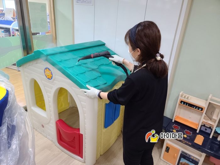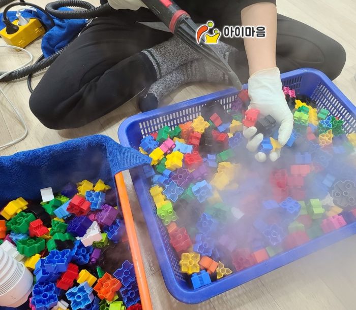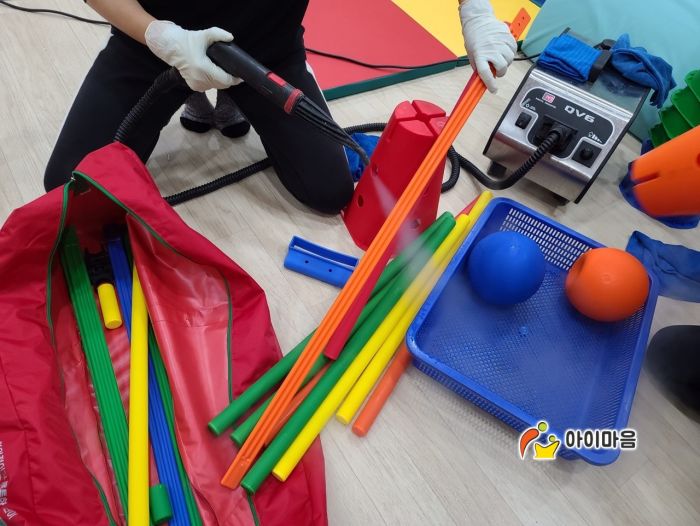 오산 아이사랑놀이터 2호점 장난감을 스팀세척살균소독 하였습니다.