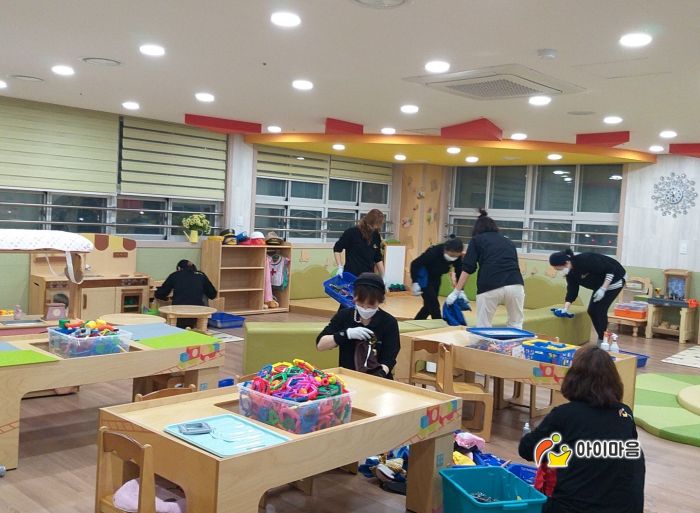 바깥놀이터 세척은 마무리되었습니다.
