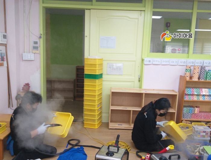 창틀과 바닥을 스팀세척살균소독 하였습니다.