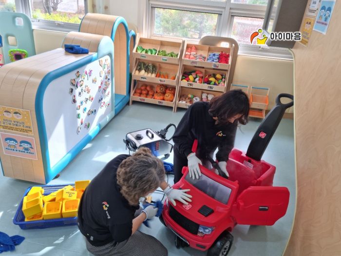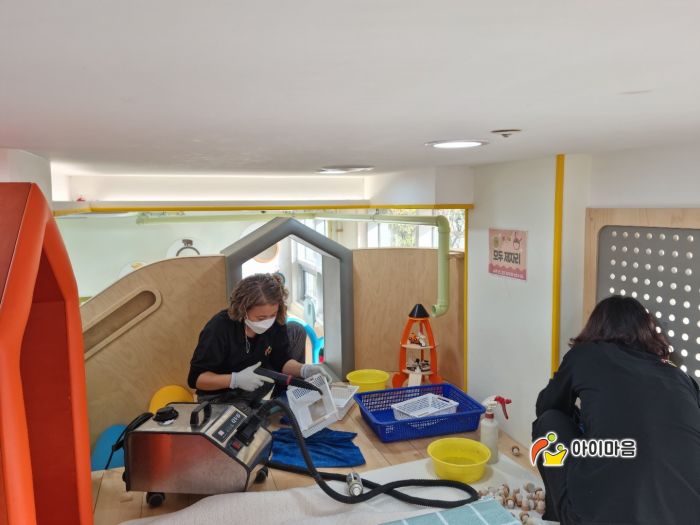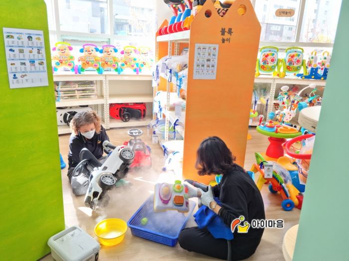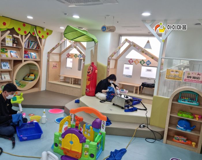 열린육아방 장난감, 시설물을 스팀세척살균소독 하였습니다.