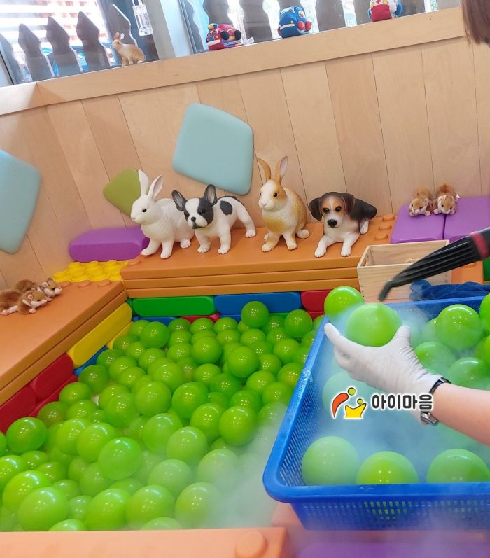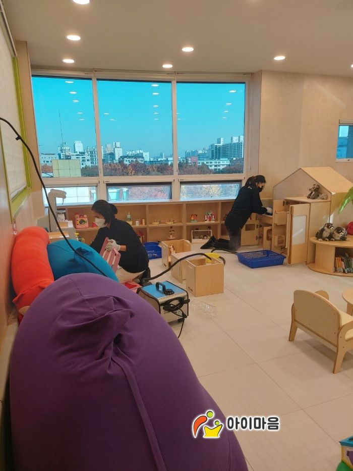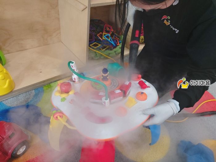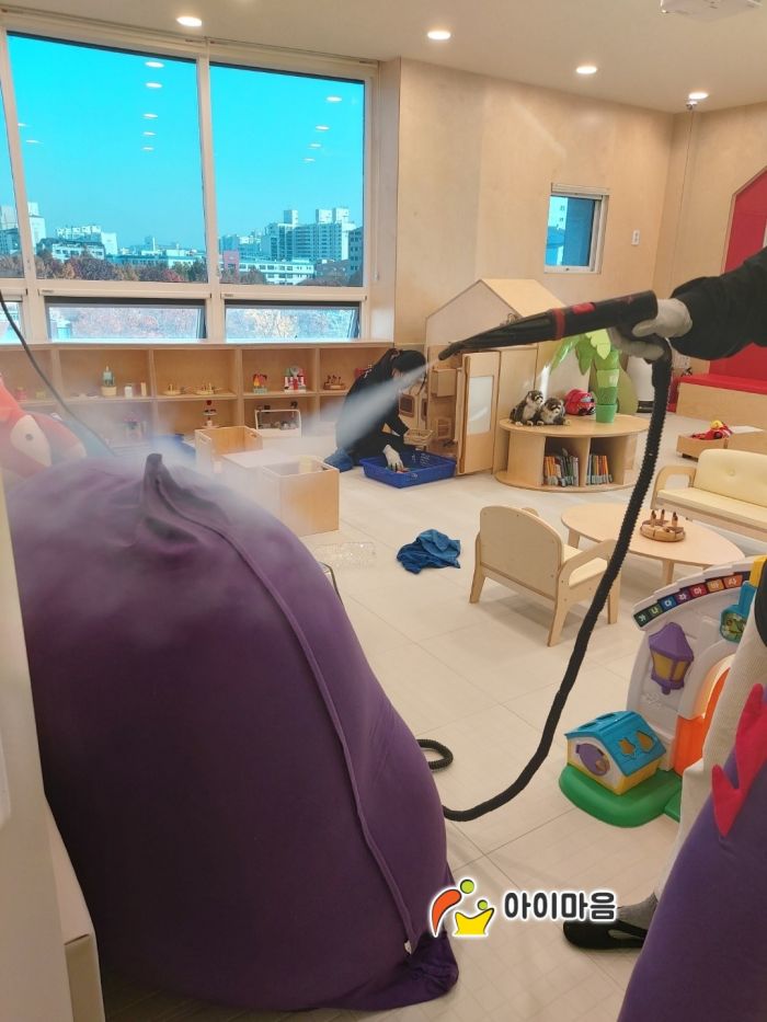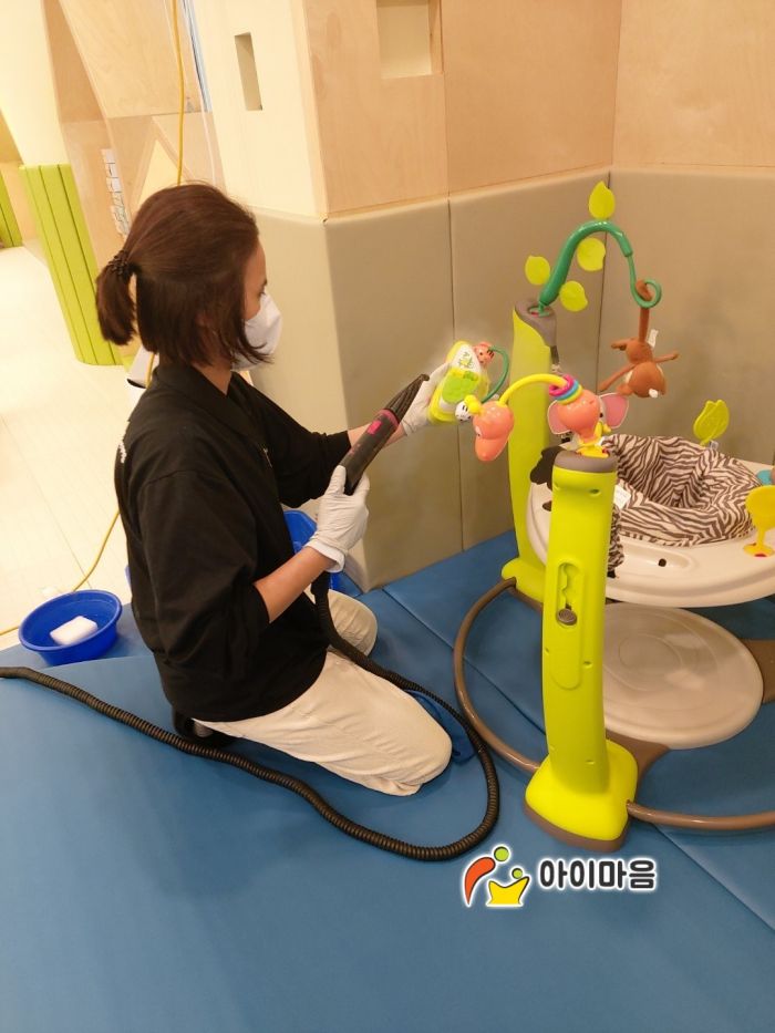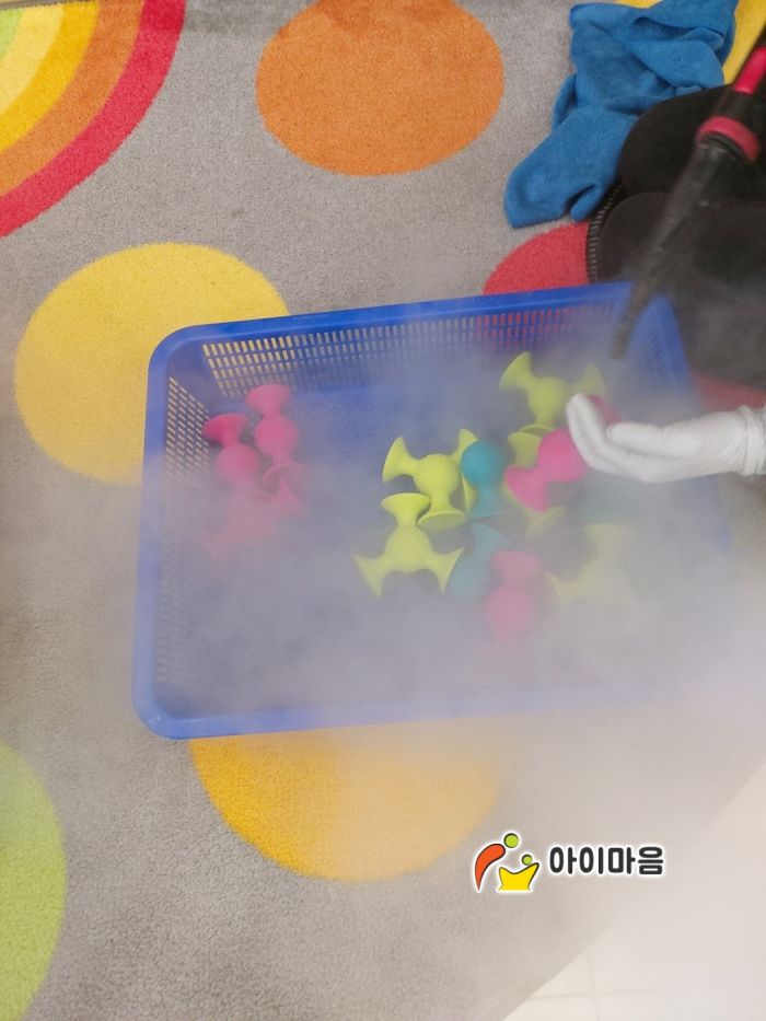 장난감과 시설물을 스팀세척살균소독 하였습니다.
