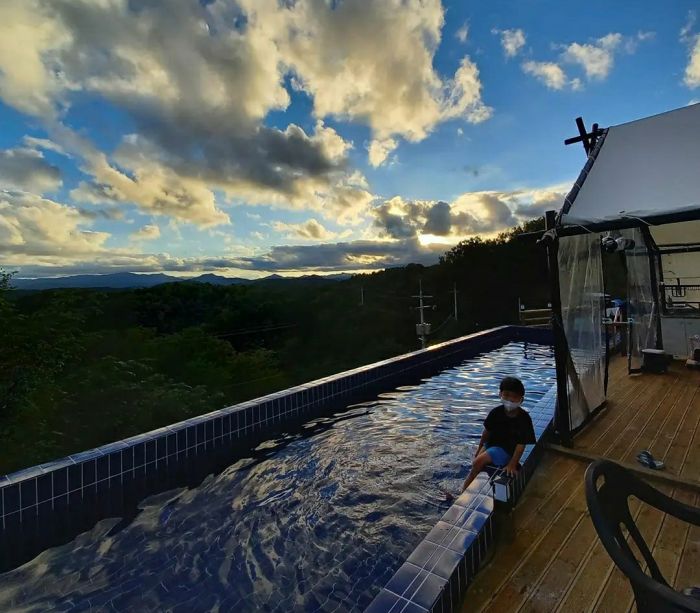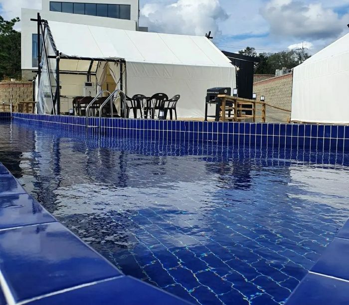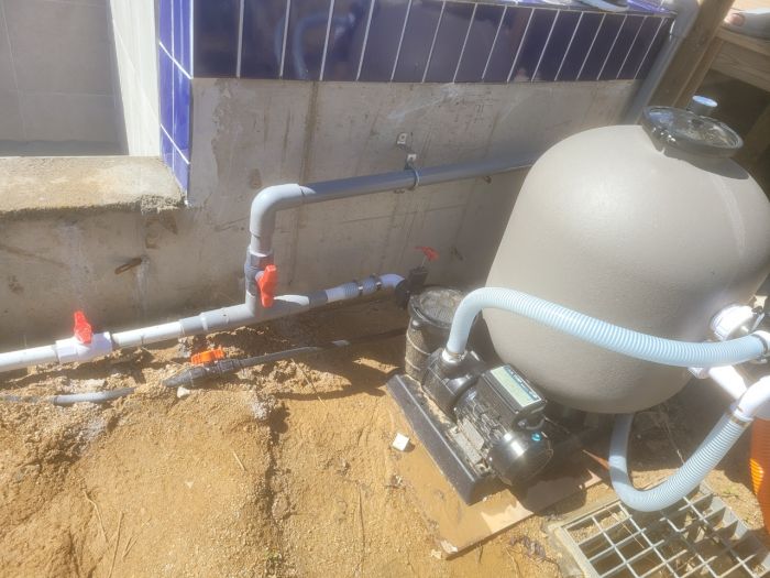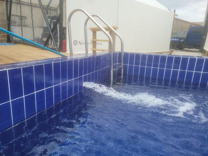 2021년10월01일 영덕 *아*클램핑장 기존수영장 배관변경, 수영장전용 히트펌프설치