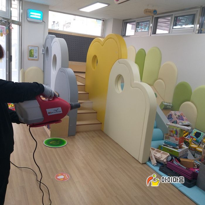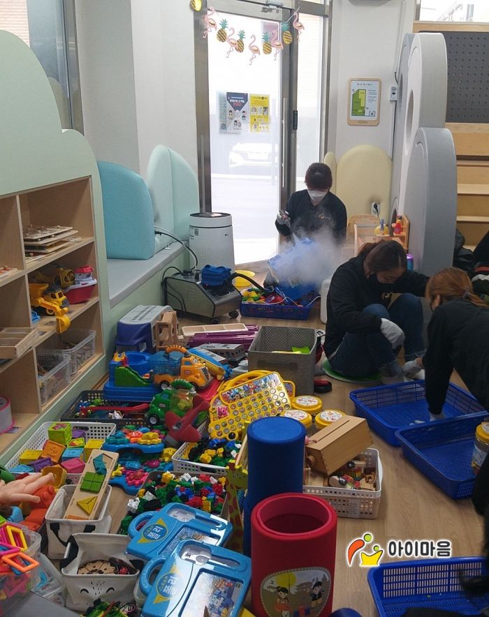 송파동열린육아방 장난감과 시설물을 스팀세척살균소독을 하고