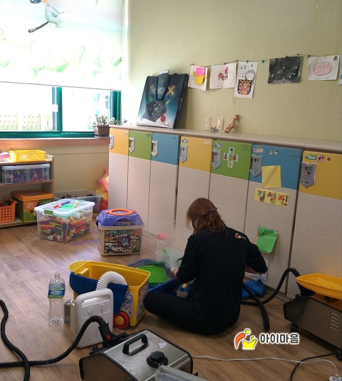 책걸상과 교구장, 교구재를 스팀세척살균소독 하였습니다.