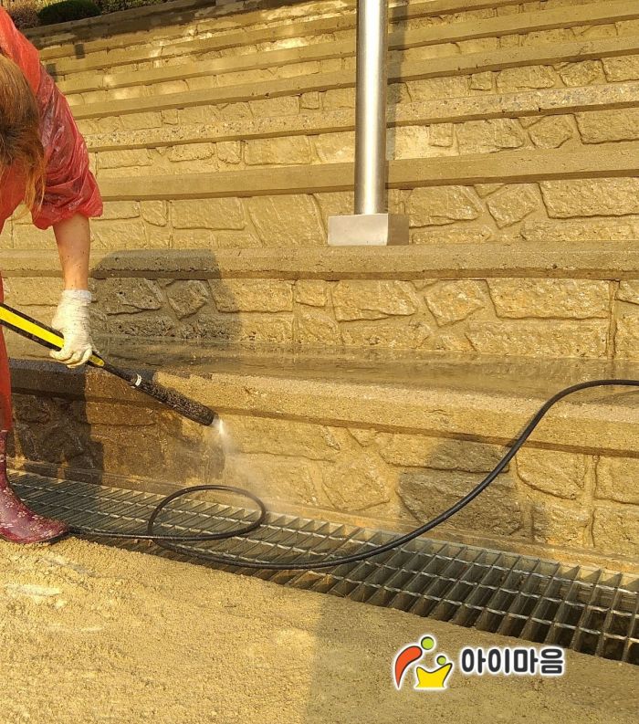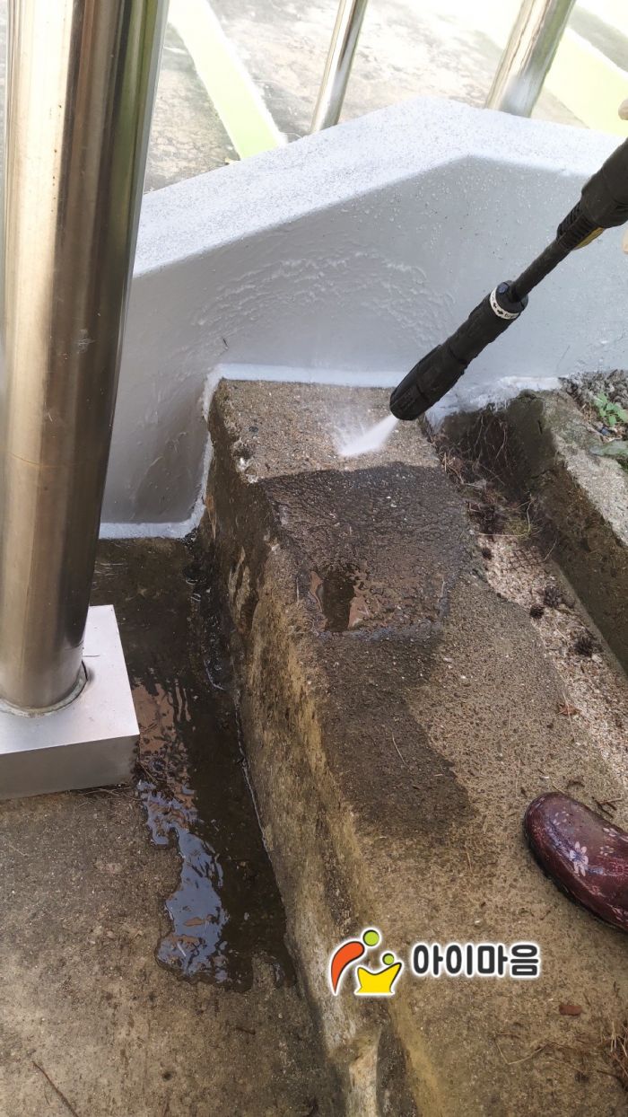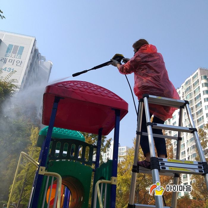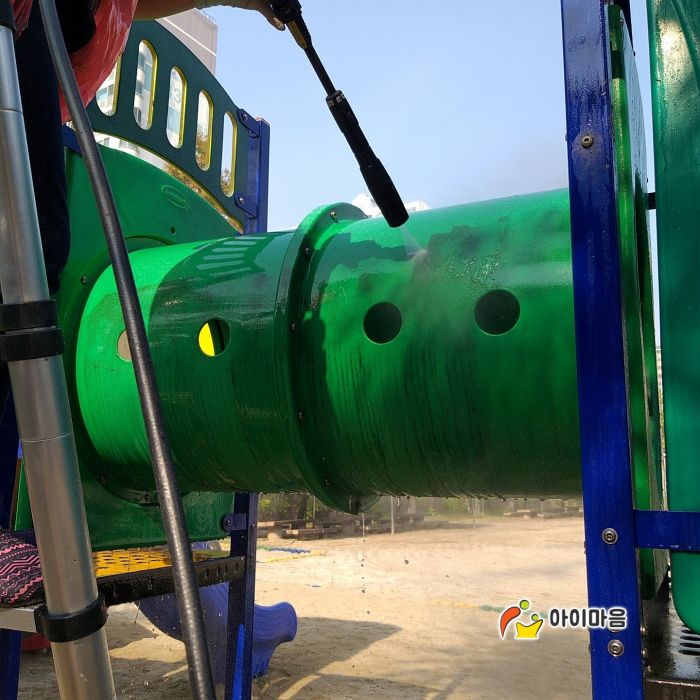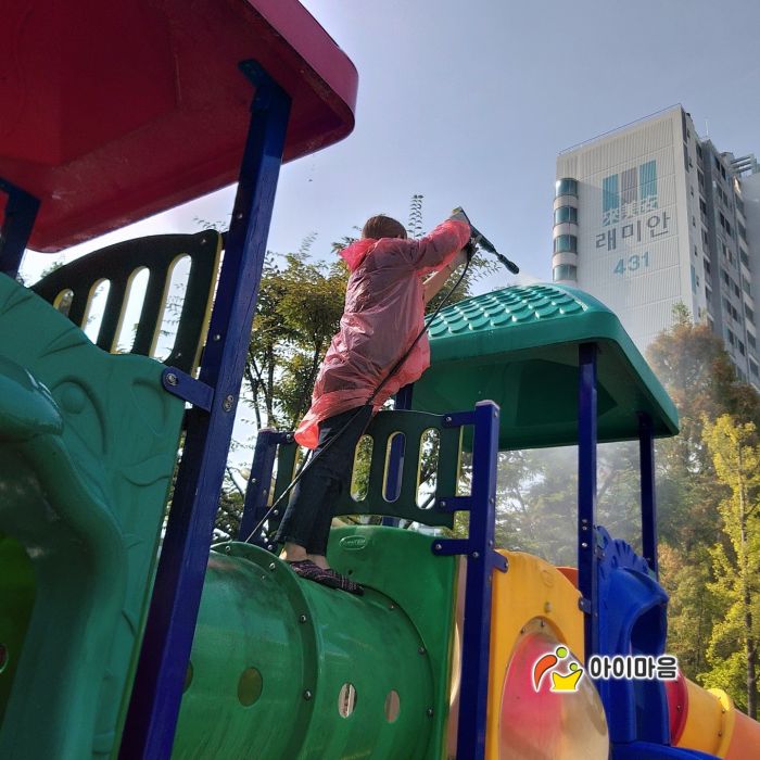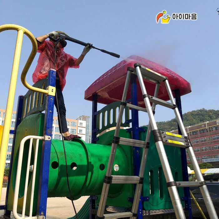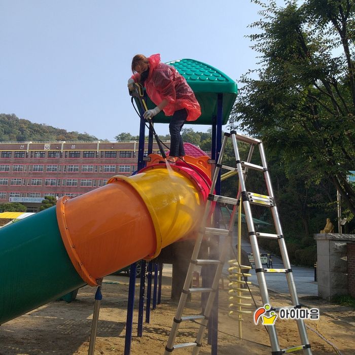 신성초등학교 바깥놀이터와 운동장 스탠드를 세척하였습니다.
