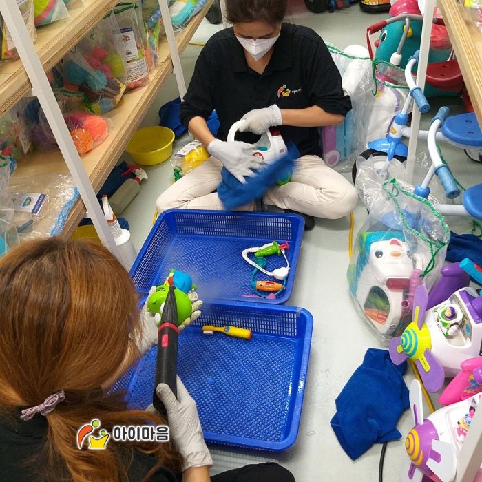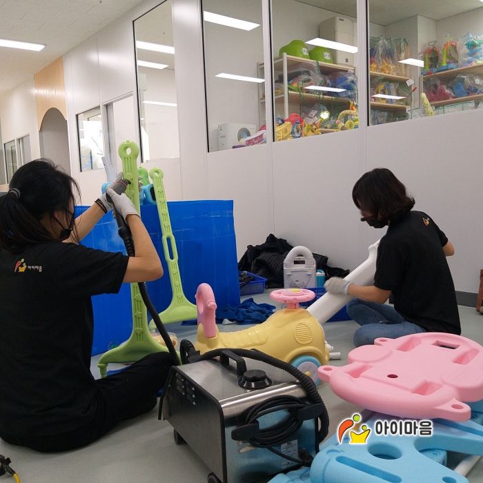 장난감과 아이사랑놀이터 전체시설물을 스팀세척살균소독 하였습니다.