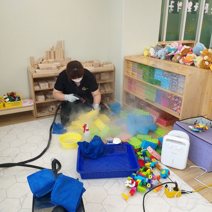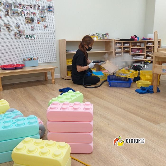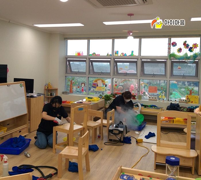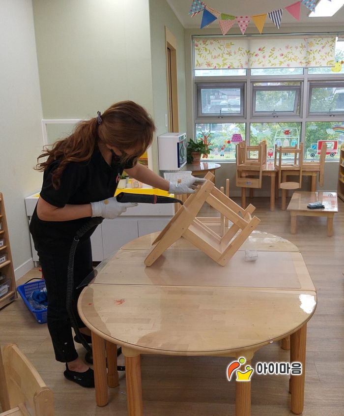 책걸상과 교구장, 교구재를 스팀세척살균소독 하였습니다.