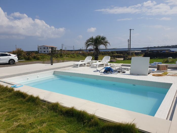 2021년10월06일 제주 우도에 위치한 스**인우도 펜션에 수영장 전용히트펌프 설치