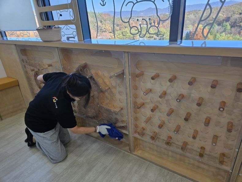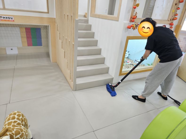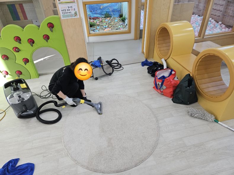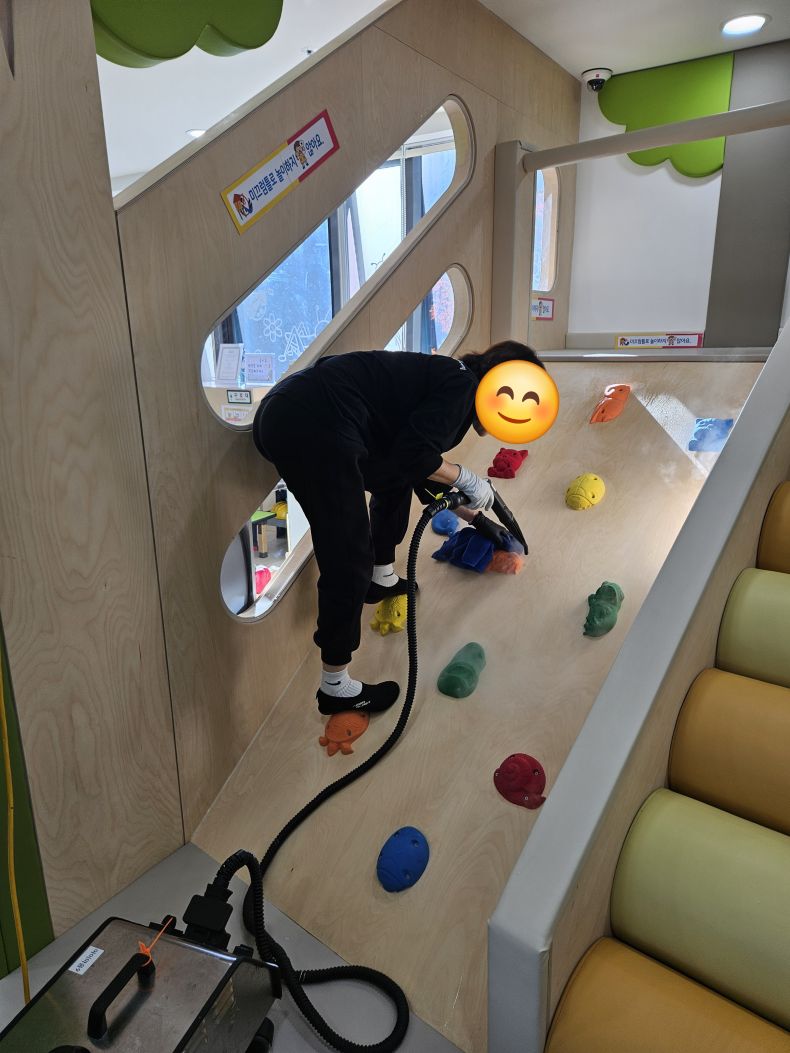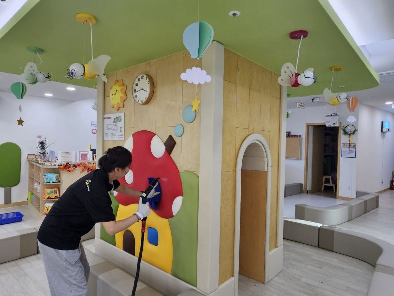 장난감과 시설물을 스팀세척살균소독 하였습니다.