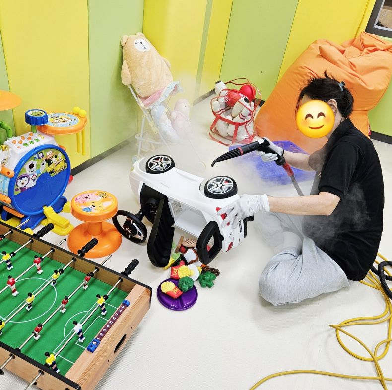 이음누리실 장난감과 피규어를 스팀세척살균소독 하였습니다.