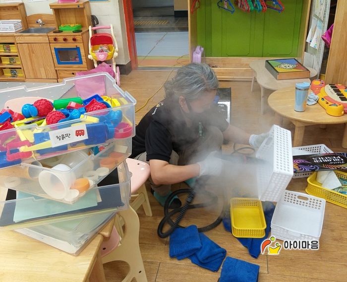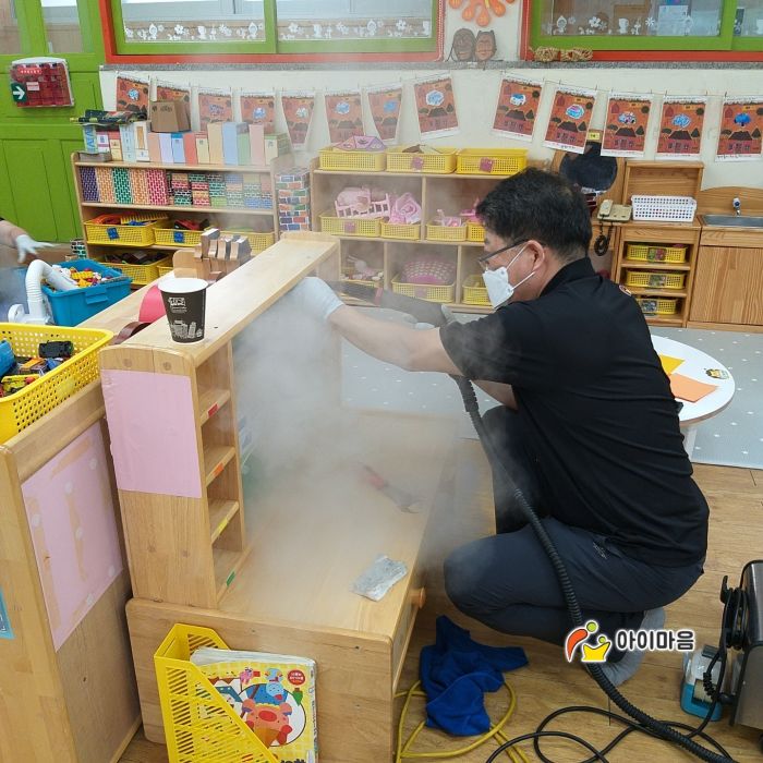 창틀과 바닥을 스팀세척살균소독 하였습니다.