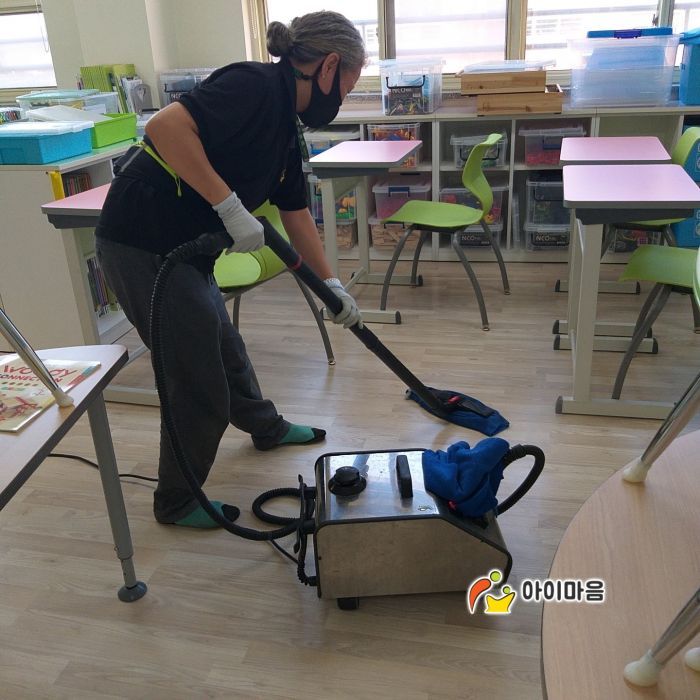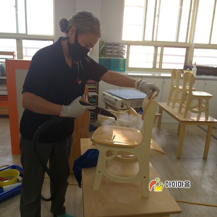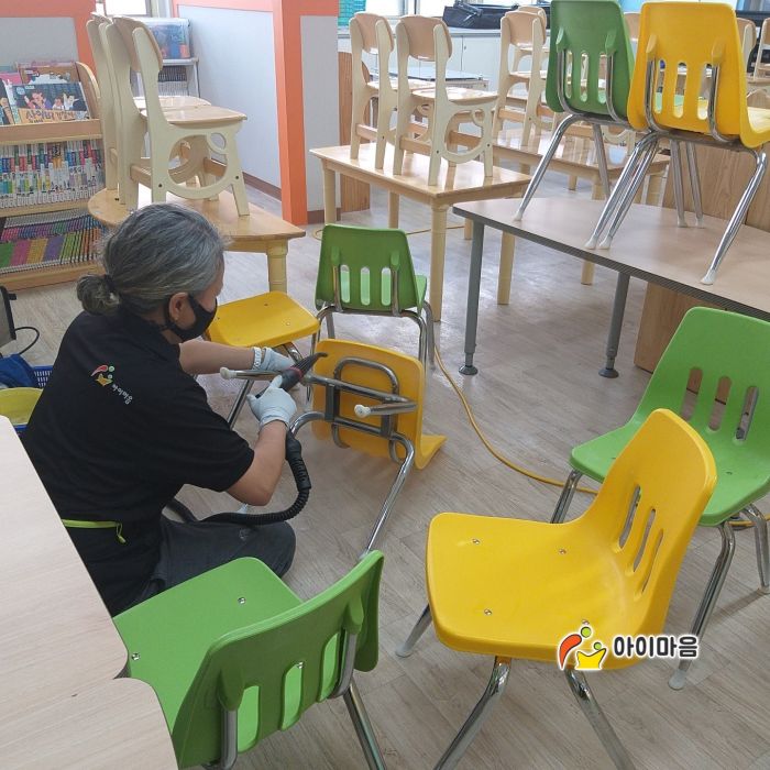 검암초돌봄실 책걸상과 교구장, 교구재, 창틀과 바닥 등을