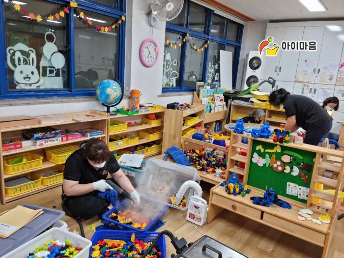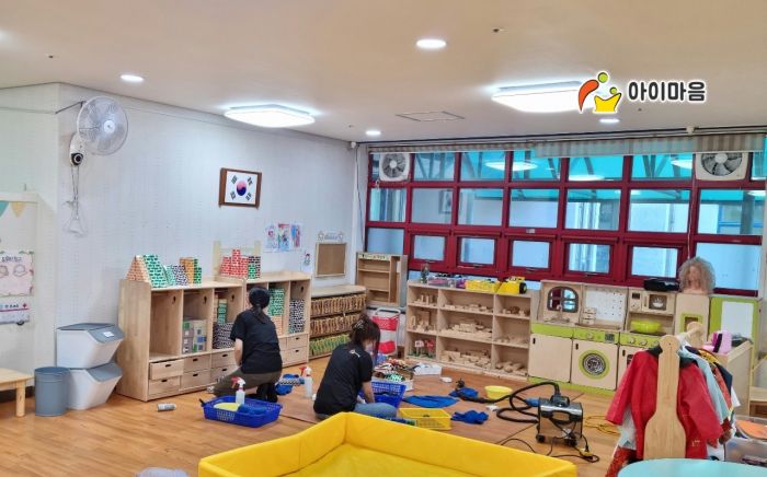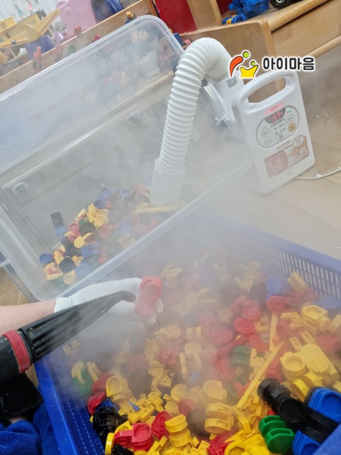 4개실 책걸상과 교구장, 교구재를 스팀세척살균소독 하였습니다.