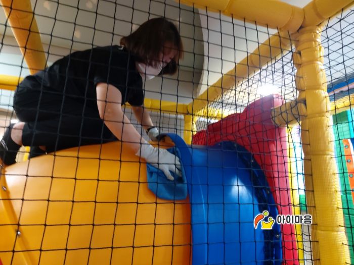 실내정글짐놀이터를 스팀세척살균소독 하였습니다.