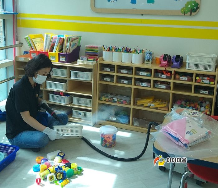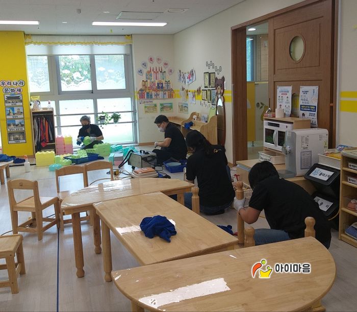책걸상과 교구장, 교구재 스팀세척살균소독을 완료하였습니다.