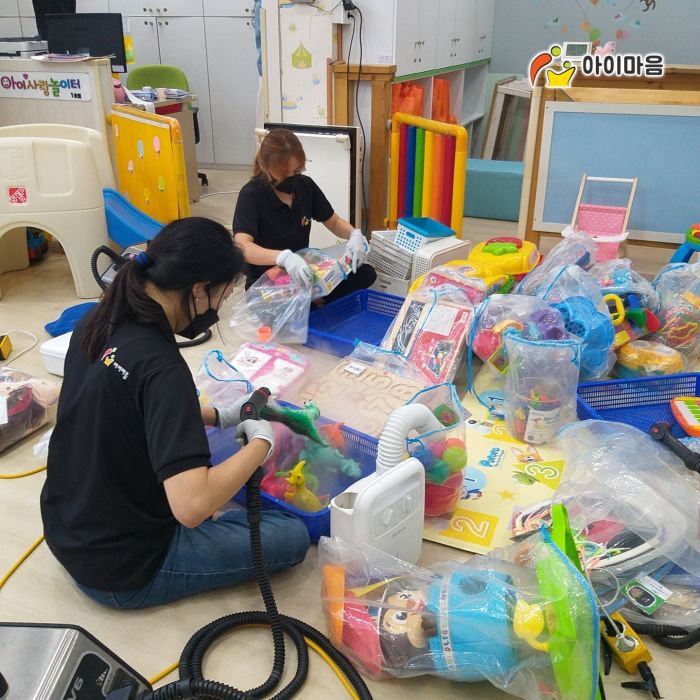 오산아이사랑놀이터 1호점 장난감과 시설물을 스팀세척살균소독 하였습니다.