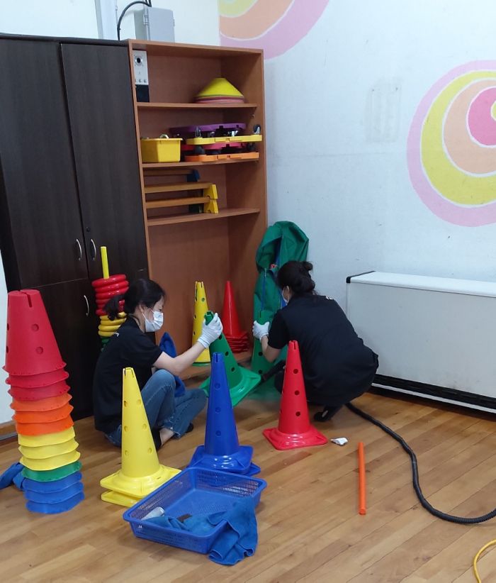 체육실 교구등을 스팀세척살균소독 하였습니다.