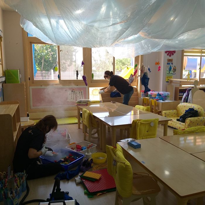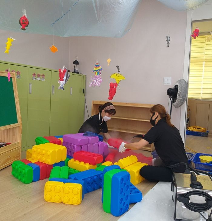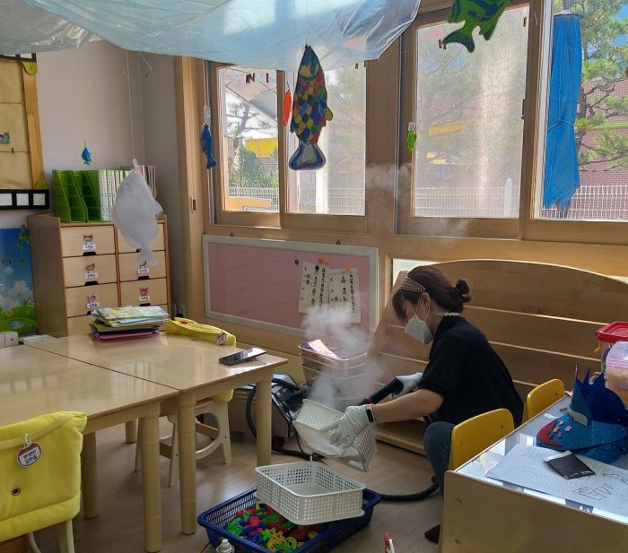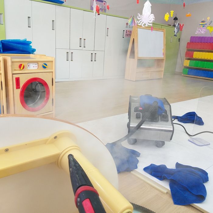 책걸상과 교구장, 교구재를 스팀세척살균소독 하였습니다.