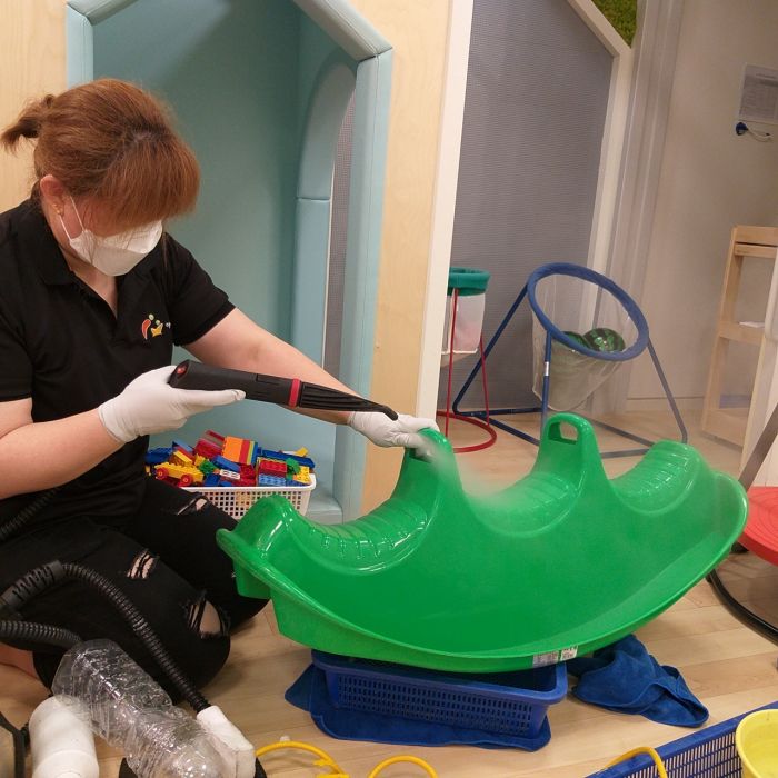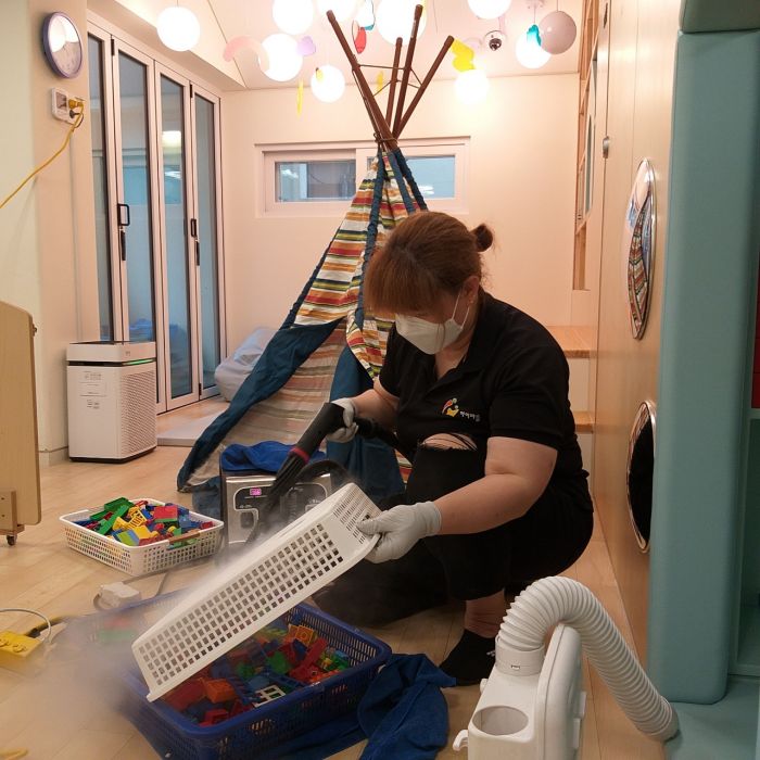 책걸상과 교구장, 교구재를 스팀세척살균소독 하였습니다.